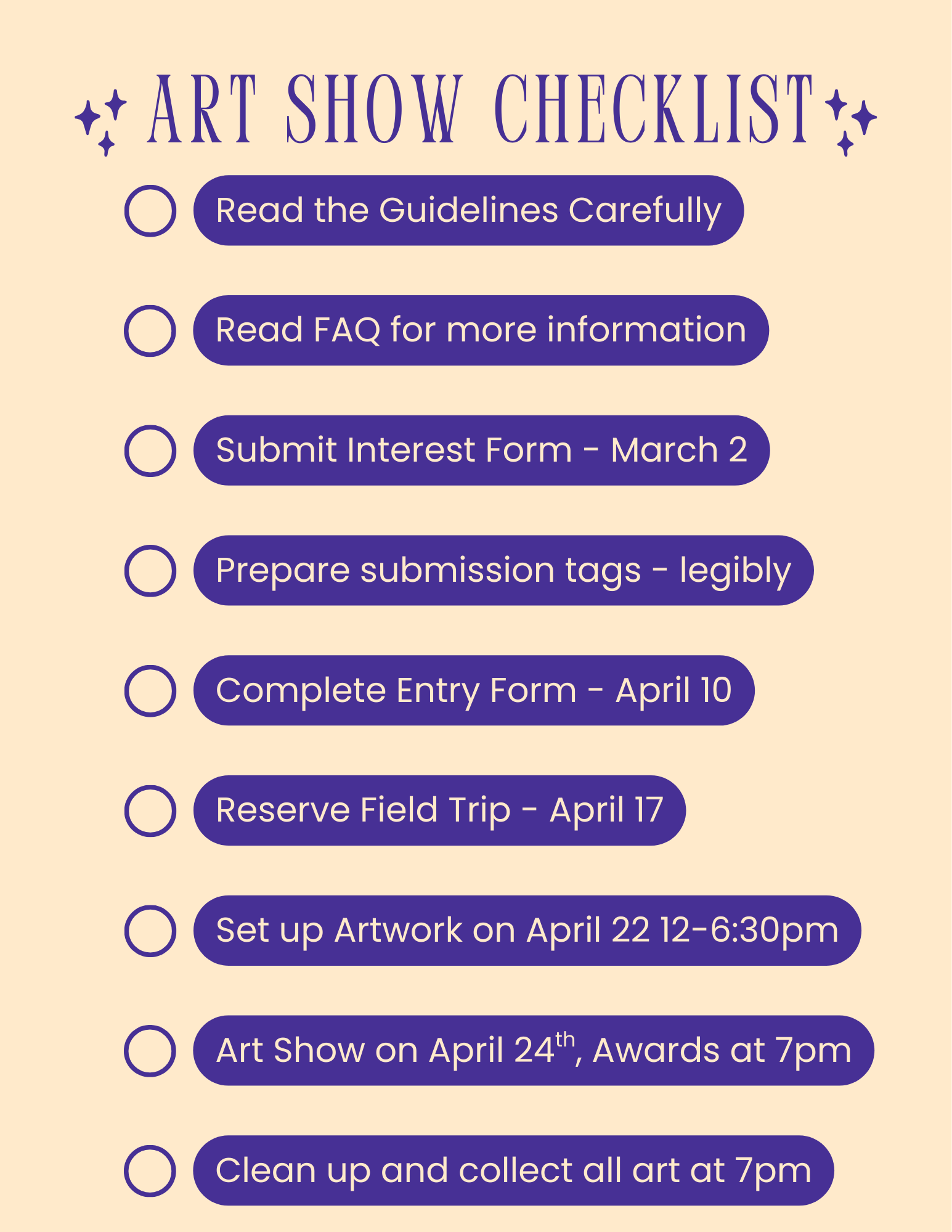 Guidelines will give details about each category requirements and descriptions - including maximum size and how to attach labels. All guidelines must be followed in order to be considered for judging.